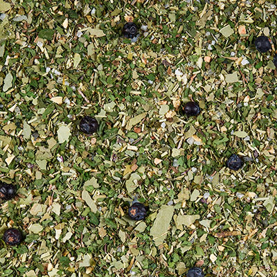 Delicata miscela di vegetali disidratati a base di sale, rosmarino, spezie e aromi, ottima per preparare condimenti per arrosti.
