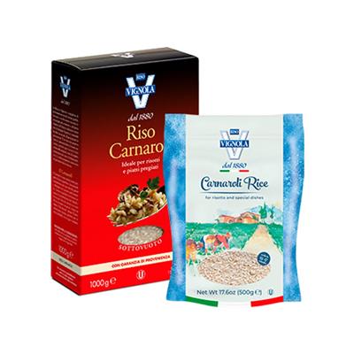 Il Carnaroli è una varietà molto pregiata di riso. L’eccezionale compattezza dei suoi chicchi, grossi e allungati con piccola perla centrale, l’alto contenuto di amilosio, l’ottimo equilibrio tra buona capacità di assorbimento dei liquidi e bassa perdita di amido insieme all’eccezionale tenuta di cottura ne fanno il “Re dei risi” italiani.