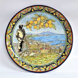Piatto in ceramica di Vietri Golfo di Napoli e Pulcinella
