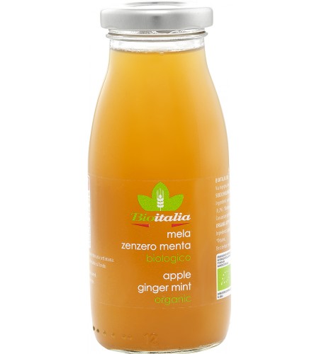 Apple, ginger and mint juice is obtained with 100  %  Italian organic apples, ginger and mint without additives and added  sugar.