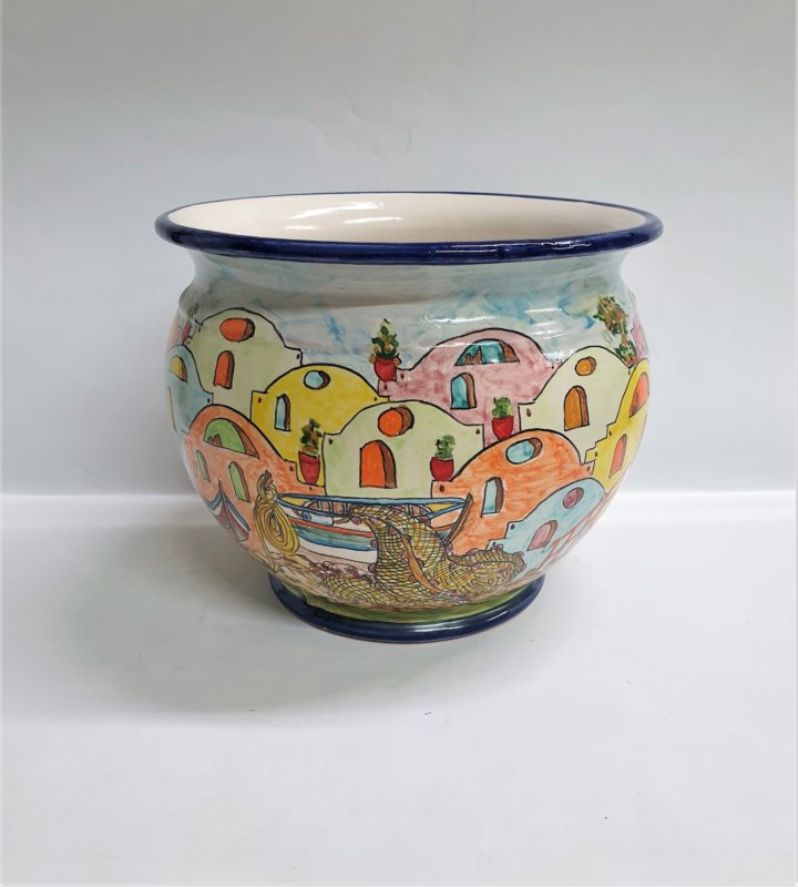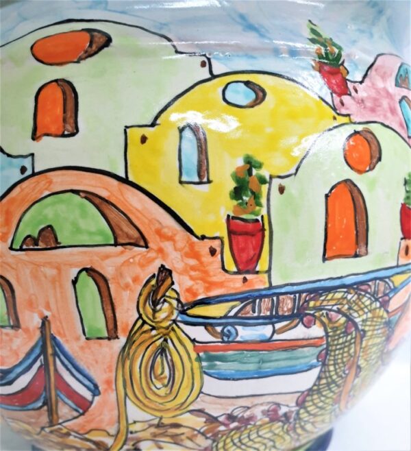 Decoro con casette e barche da pesca stile Positano, molto bello e colorato, adatto a tutti gli ambienti.