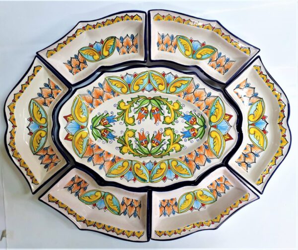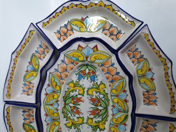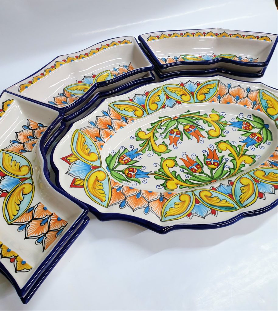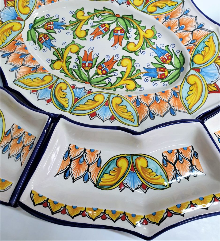 Antipastiera, cena fredda multicolore, in ceramica Vietrese.