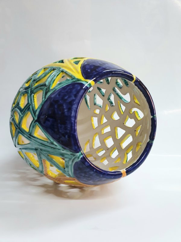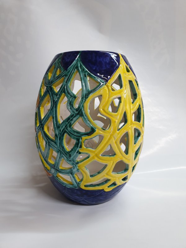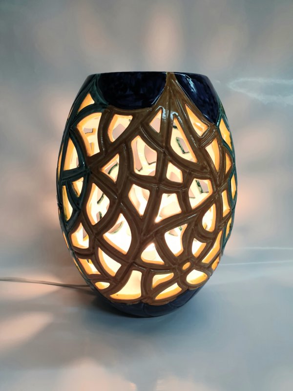 Lampada da tavolo traforata in ceramica creata e dipinta rigorosamente a mano, nel nostro laboratorio artistico di Angri(sa).