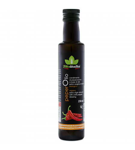 Peperolio is an infusion of organic chili pepper in organic cold extracted extra virgin olive oil.