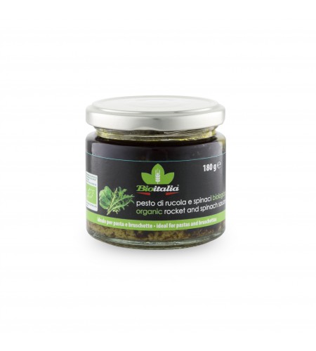 Pesto with arugula and spinach is made with ingredients coming from the Sele Plain.
